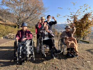 記念写真を撮ったりしました。富士山も見ることができ、また紅葉もきれいだったので利用者様はとても喜んでいました。