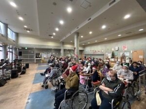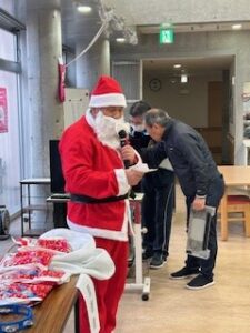 していただき、寮生も一緒に歌い大盛り上がりでした。第2部では、クリスマス会恒例カラオケ大会が