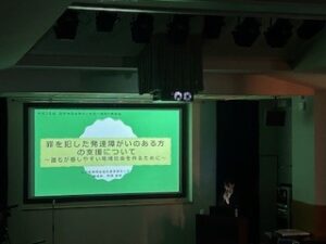 山梨県地域生活定着支援センターの内澤相談員が講演を行いました。地域生活定着支援センターの役割や、発達障がいのある触法者支援の実例などを参加者にお伝えしました。参加された方々にも定着支援センターや触法者支援について知ってもらえる良い機会となったと思います。今後も、地域生活定着支援センターについて広く知ってもらえるよう、啓発活動を行っていきたいと考えています。