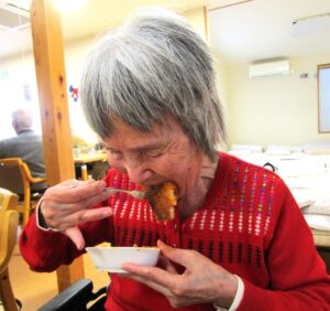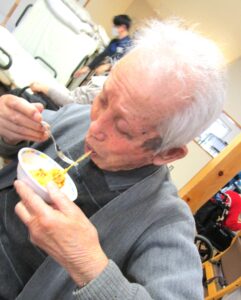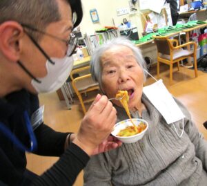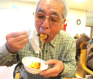 12月8日(月)~13日(土)5日間「手作りおやつレク」で、曜日をわけながら【ピザ】または【アメリカンドック】を作りました。毎回利用者のみなさんにホットプレートを使って作っていただくのですが、コロナ・インフルエンザの感染が甲州市に拡がっていたため、今回は感染防止の為職員が調理場で作りました。できたて熱々のピザやアメリカンドックを食べ「熱々で美味しいね~いい匂い!」「やっぱり、手作りはおいしいね~」「次は私たちが自分で作りたいね~」「またぜひやってほしいよ!」など満面の笑みをこぼしながら話してくださったことが印象的です。今後もこのように、利用者さんが喜んでいただけるイベントを積極的に計画したいと思います♪