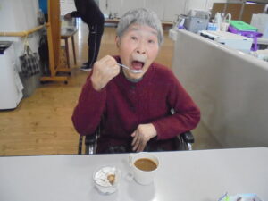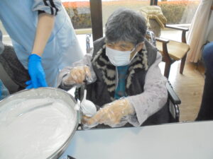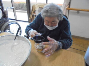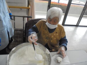 工程はシンプルで、どなたでも取り組みやすい内容となっており、皆さま手際よく作業されていました。簡単に作れるおやつ作りを通して、季節の楽しみや交流の時間を持つことができた1日となりました。