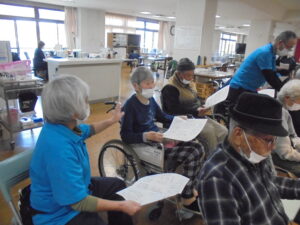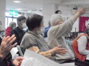 演奏が始まると、利用者様は曲に合わせて手拍子をされたり、懐かしい歌を口ずさんだりと、それぞれの楽しみ方で演奏を味わっておりました。中には、リズムに合わせて身体を動かされる方もおり、音楽と一体になって楽しむ姿も見られました。