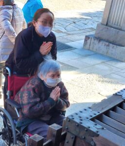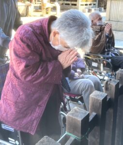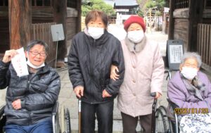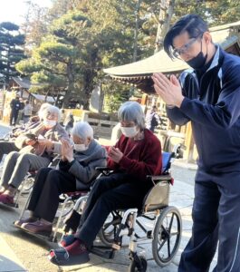 1月15日(木)~21日(水)5日間の内、順番で毎年恒例の初詣へ行ってきました。昨年は【武田神社】へ行って来たため、今年は【甲斐國一宮浅間神社】へ行き、皆様にとって素晴らしい一年となるよう、一緒にお祈りを捧げました。お賽銭を納め、二礼二拍手一礼をして短めにお願い事をしている方や深々と頭を下げ、たくさんお願い事をしている方など色々な方がいらっしゃたのは印象的です!その後は、お守りを購入する方やおみくじを引いて今年の運勢を占っている方など思い思いに楽しんでいただきました。今年みなさんにとって『良い年』になることをスタッフ一同心よりお祈り申し上げます。やっぱり外出は良い気分転換になり、みなさんとても喜ばれるので、今後も積極的に計画したいと思います🎵