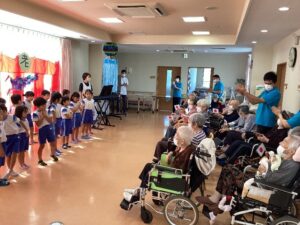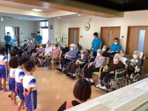健康管理から様々な準備や送迎にいたるまで多くの課題がありましたが、職員と法人間の協力で無事実施できました。 ご利用者様からは、当日ばかりでなく翌日まで「久しぶりに子どもの姿を見て楽しかった。」「いい一日だった。」「本当にうれしかったよ、ありがとう。」というお言葉をたくさんいただきました。心温まる敬老会が実施できたのではないかと思います。