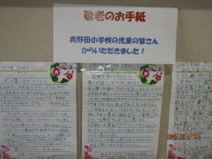 地域にある奥野田小学校との交流はこの事業所が開設して間もなく始まり、以前は児童が施設に訪問しご利用者様と直接触れ合ったこともありました。