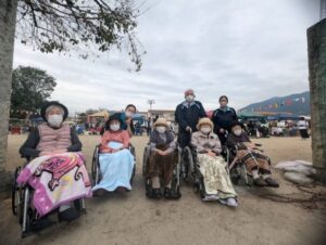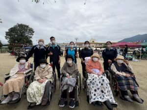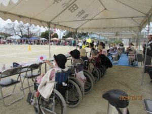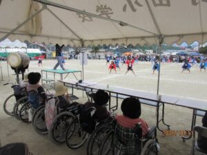そこで、介護職員から運動会の見学の計画が立案され、それを校長先生にお伝えしたところ、大変なご配慮をいただき来賓席に招待していただくことができました。